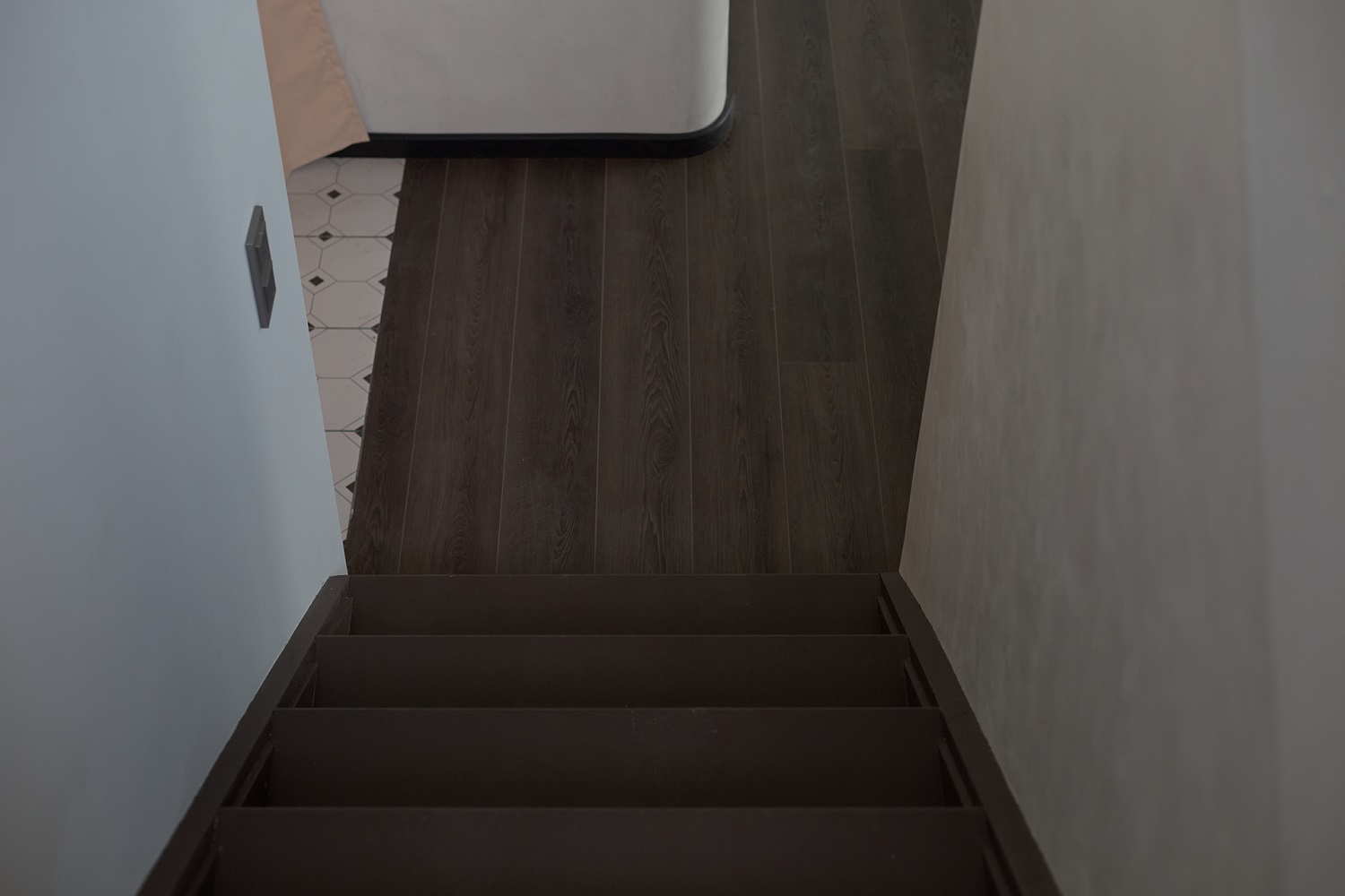 3. Судя по описанию кварцевый ламинат можно было положить и в сан узел, но т. к. керамогранит на пол я купил ещё до выдачи ключей, то я не захотел дополнительно заморачиваться.